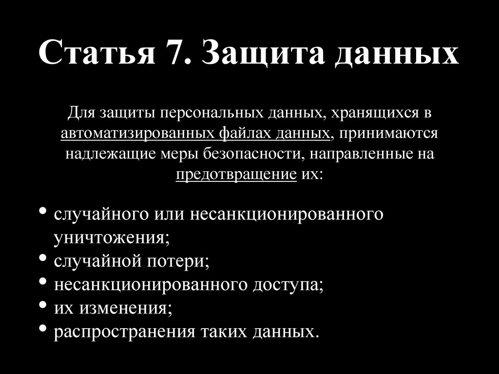 Статья 7. Защита данныхДля защиты персональных данных, хранящихся в