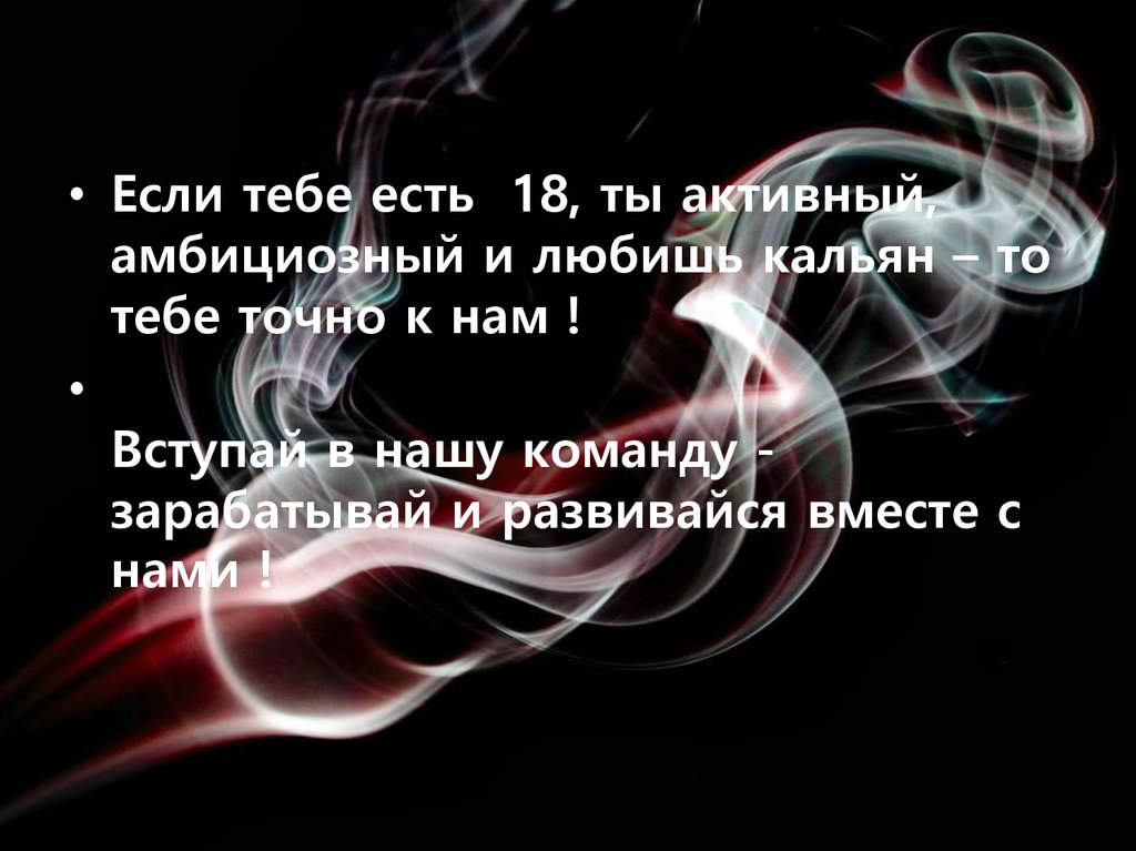 • Если тебе есть 18, ты активный,амбициозный и любишь кальян – то