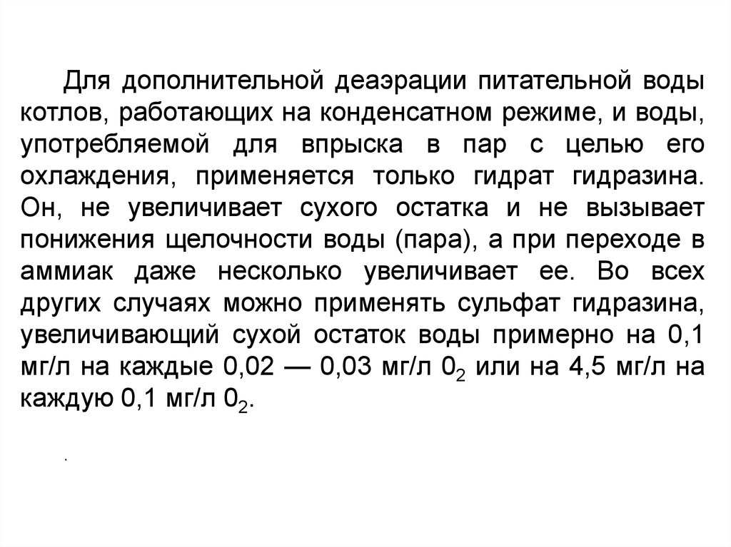 котлах, после чего дозировка гидразина снижается.