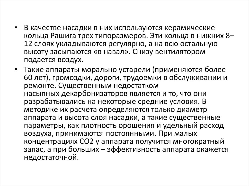 насыпных декарбонизаторов является и то, что они
