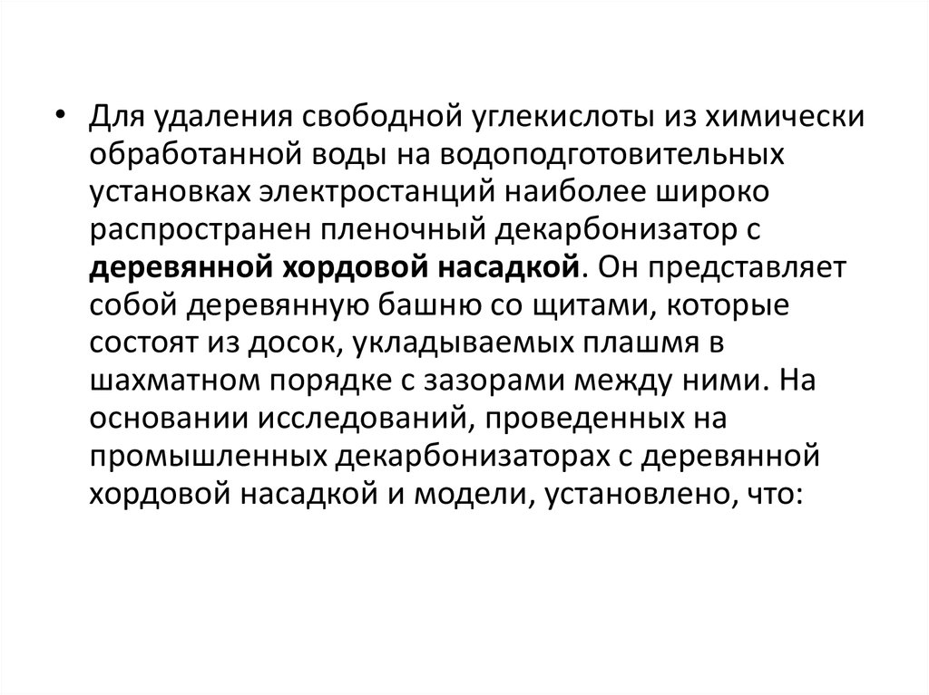• Для удаления свободной углекислоты из химическиобработанной воды на водоподготовительных