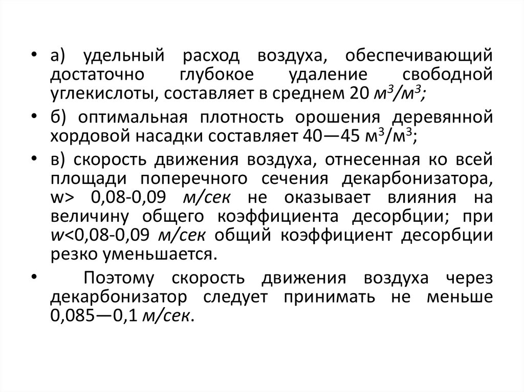 w<0,08-0,09 м/сек общий коэффициент десорбции