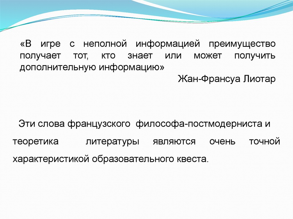 6. Итак, образовательный квест – интегрированная технология, объединяющая идеи проектного метода, проблемного и игрового обучения,
