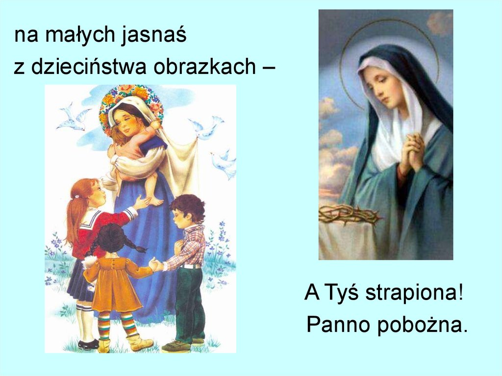 Tyś jest najświętsza i Ty jesteś dobra,Ty jesteś polska – a Tyś jest królewska.