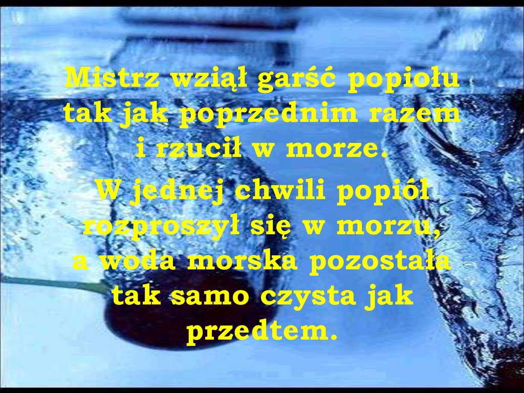 Mistrz wziął garść popiołui wrzucił do szklanki