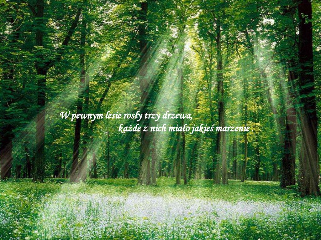 W pewnym lesie rosły trzy drzewa,każde z nich miało jakieś marzenie .