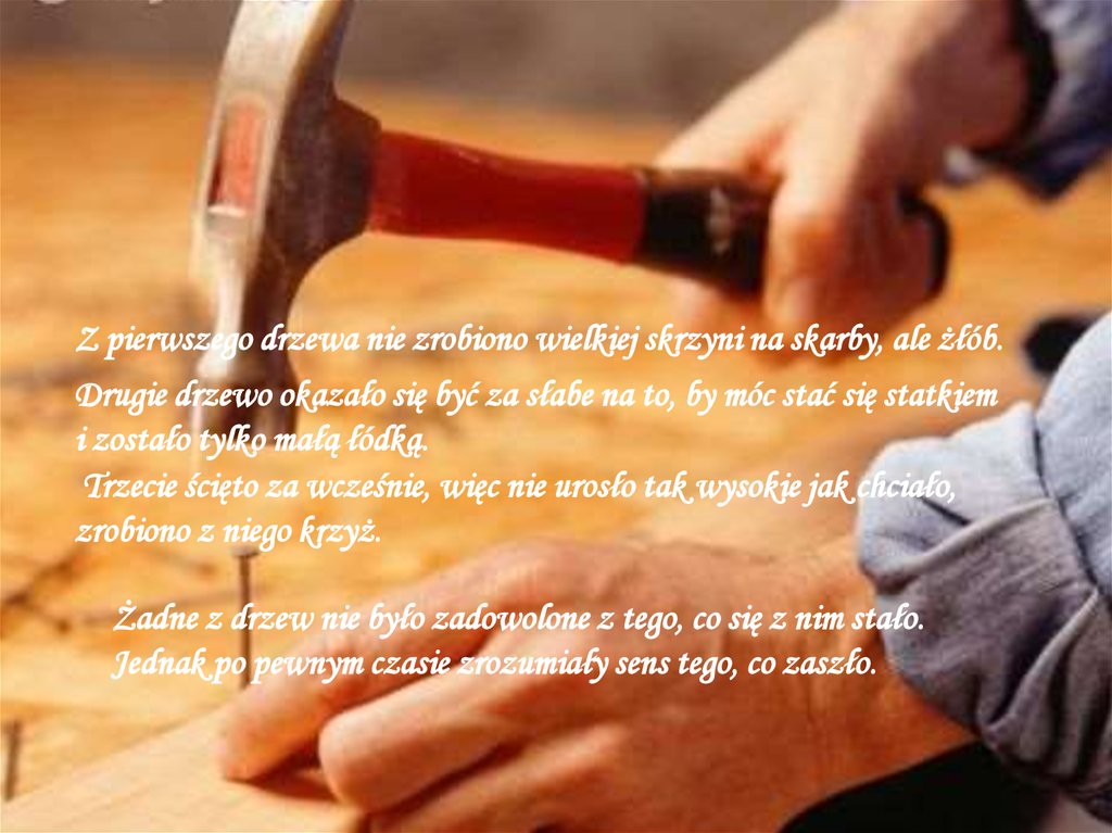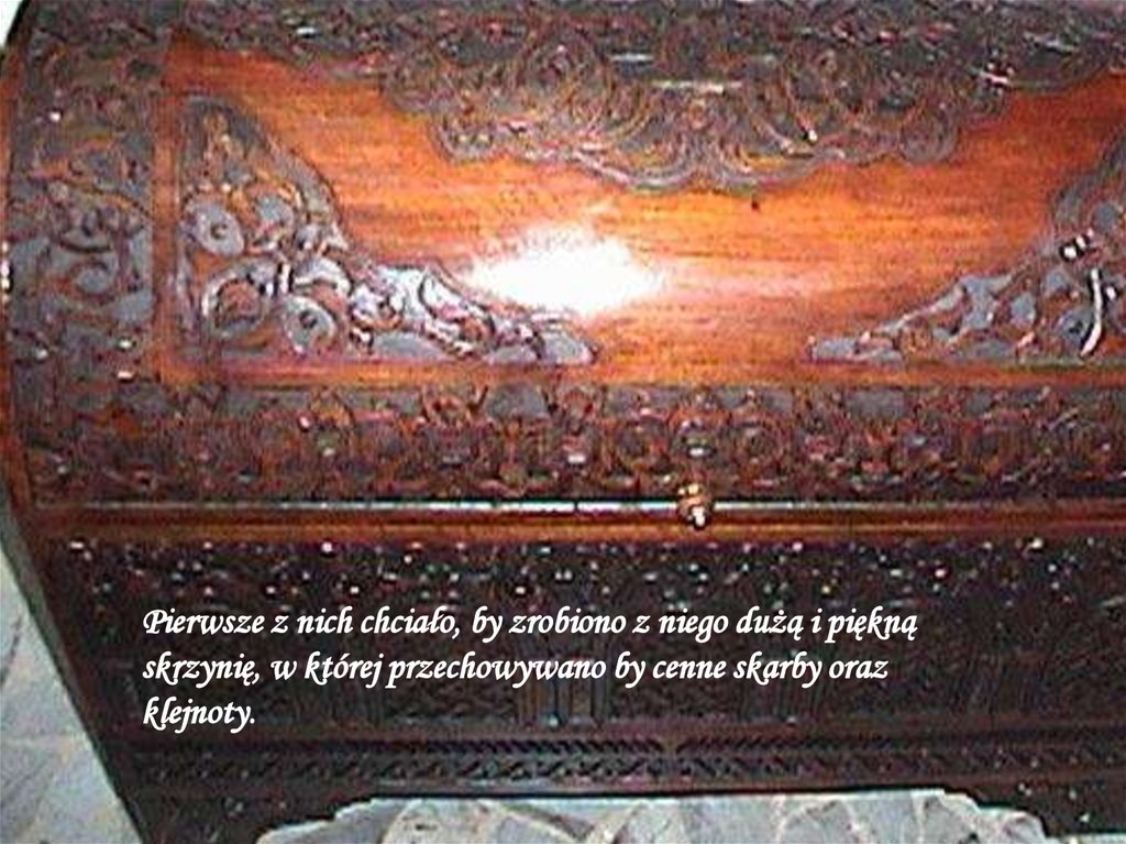 Pierwsze z nich chciało, by zrobiono z niego dużą i pięknąskrzynię, w której przechowywano by cenne skarby oraz