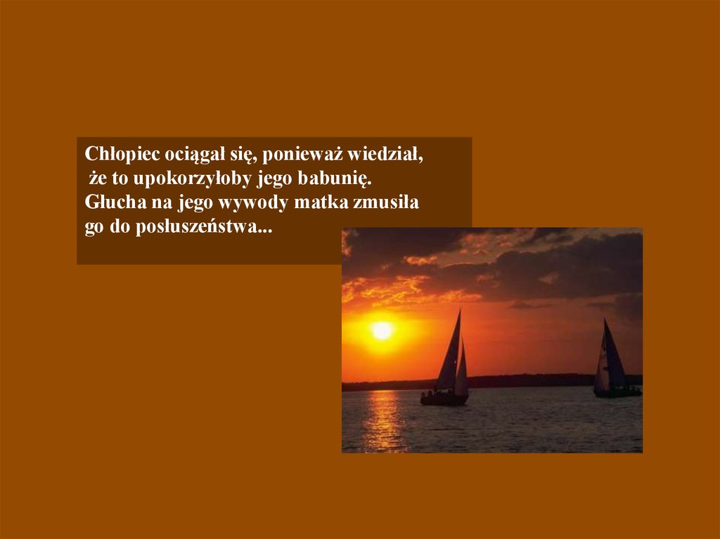 Chłopiec ociągał się, ponieważ wiedział,że to upokorzyłoby jego babunię.