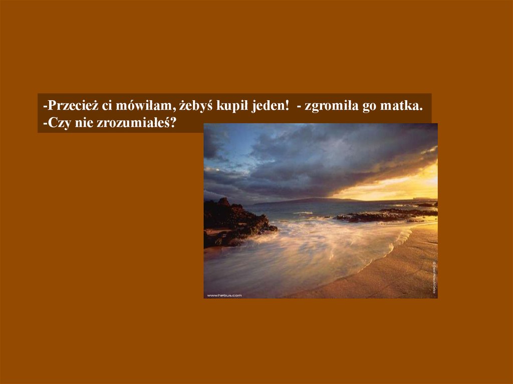 -Przecież ci mówiłam, żebyś kupił jeden! - zgromiła go matka.-Czy nie zrozumiałeś?