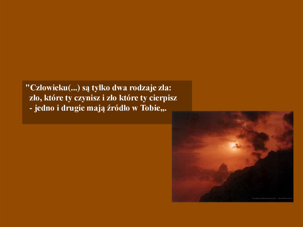 "Człowieku(...) są tylko dwa rodzaje zła:zło, które ty czynisz i zło które ty cierpisz