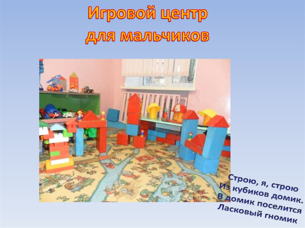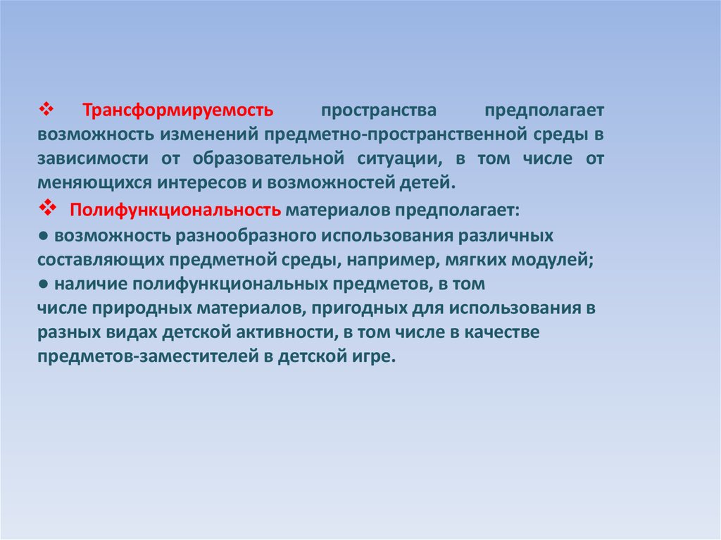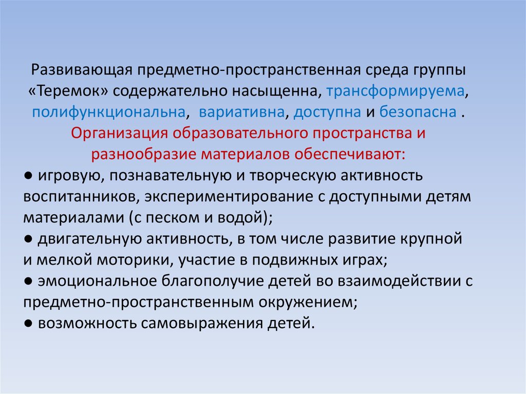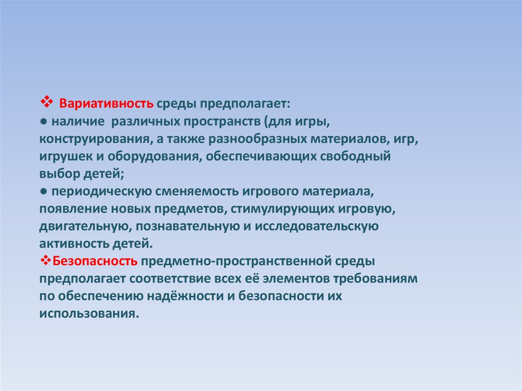 Вариативность среды предполагает:● наличие различных пространств (для игры,
