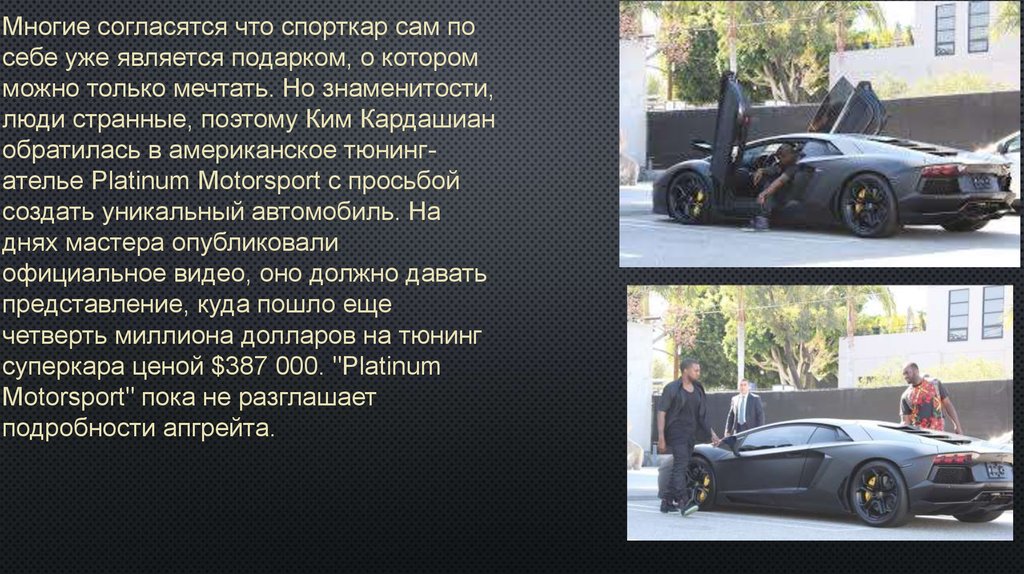 1. Автомобиль "Lamborghini" у знаменитостей.