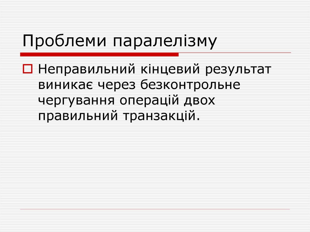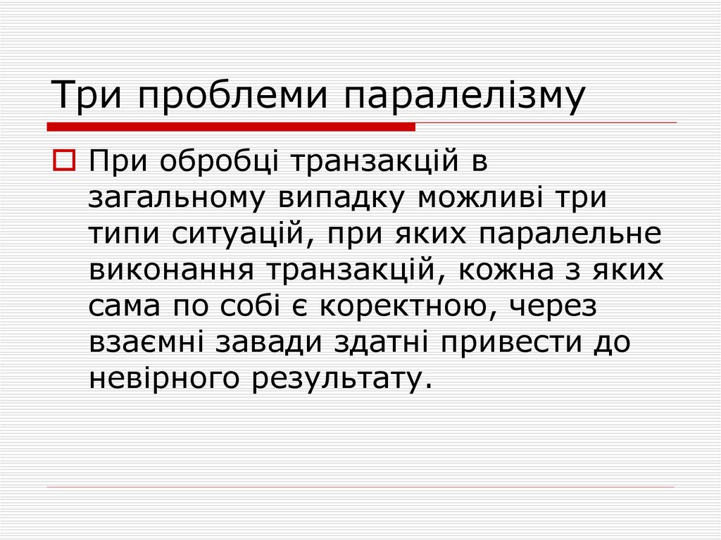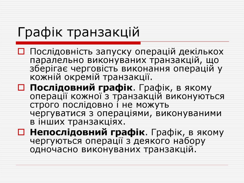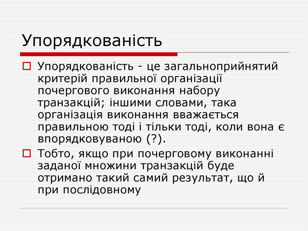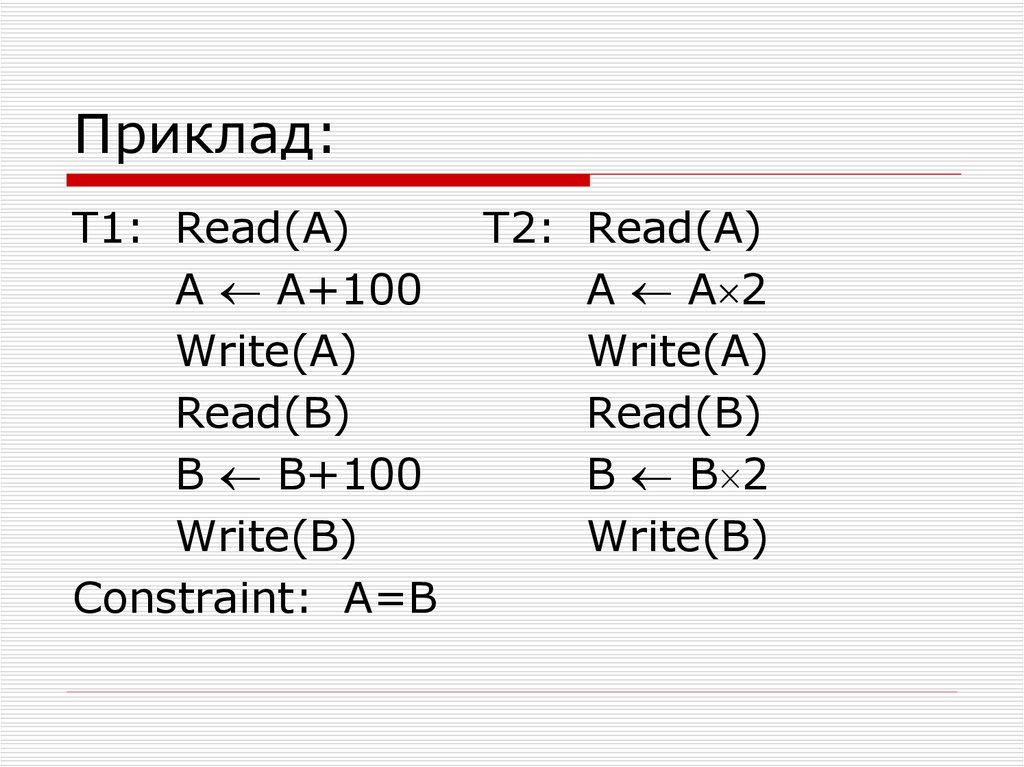 1. Окремі транзакції є правильними2. Будь-яка послідовність транзакцій, на