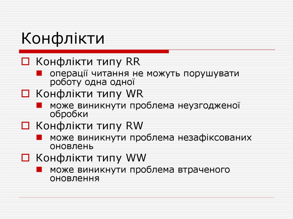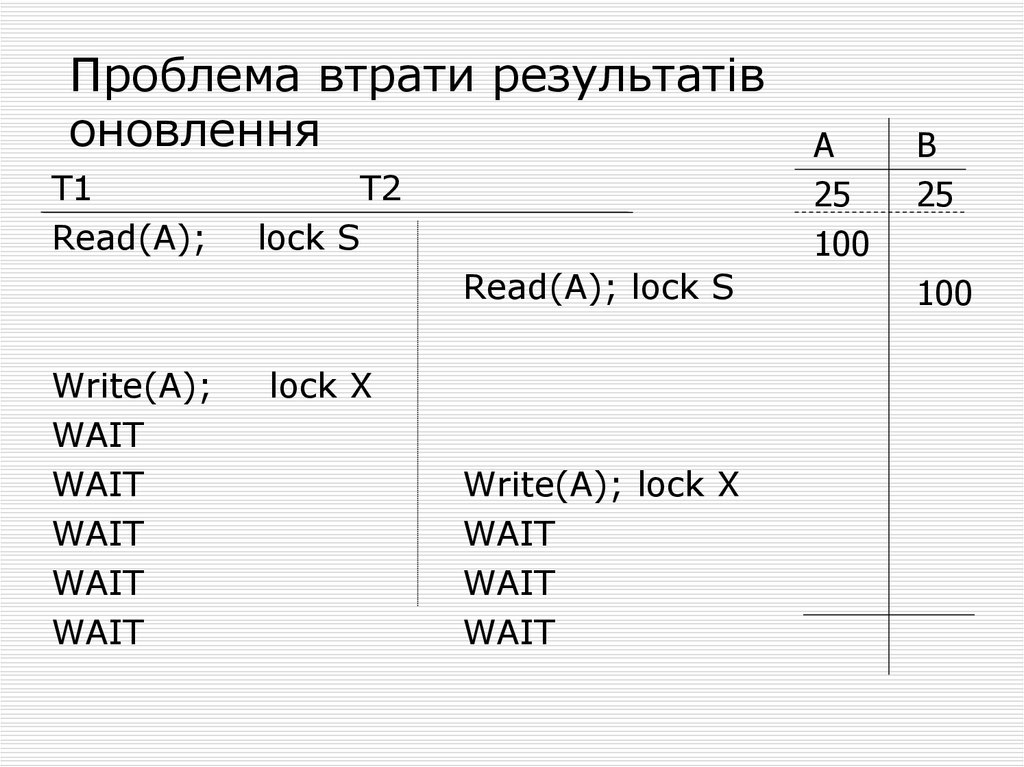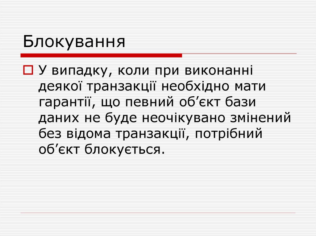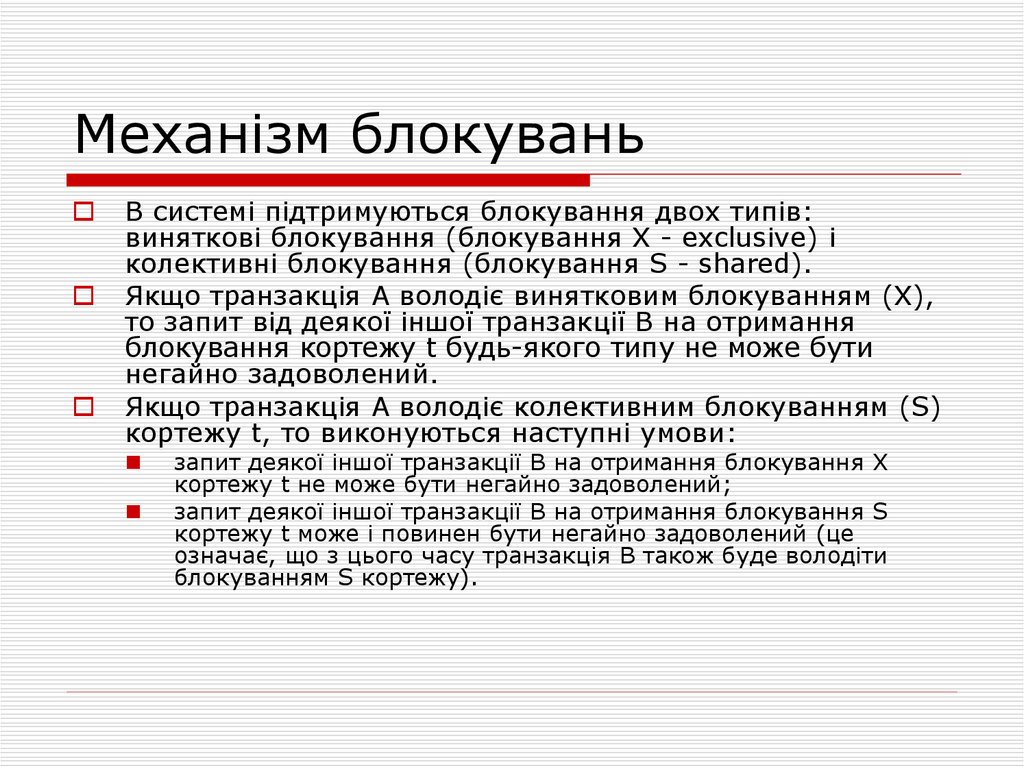 В системі підтримуються блокування двох типів:виняткові блокування (блокування X - exclusive) і