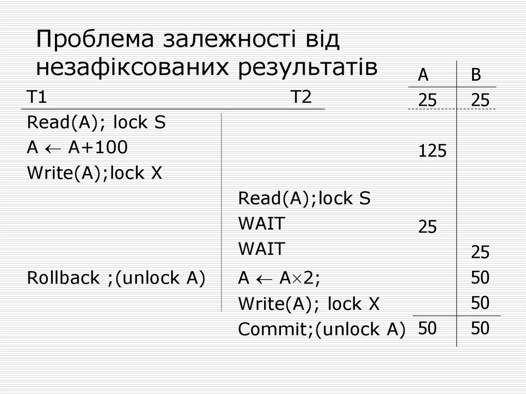 Якщо транзакція A володіє винятковим блокуванням (X),