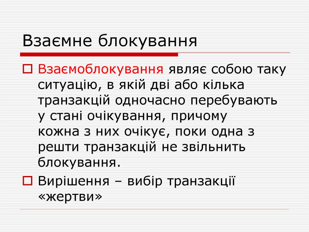 Взаємоблокування являє собою такуситуацію, в якій дві або кілька