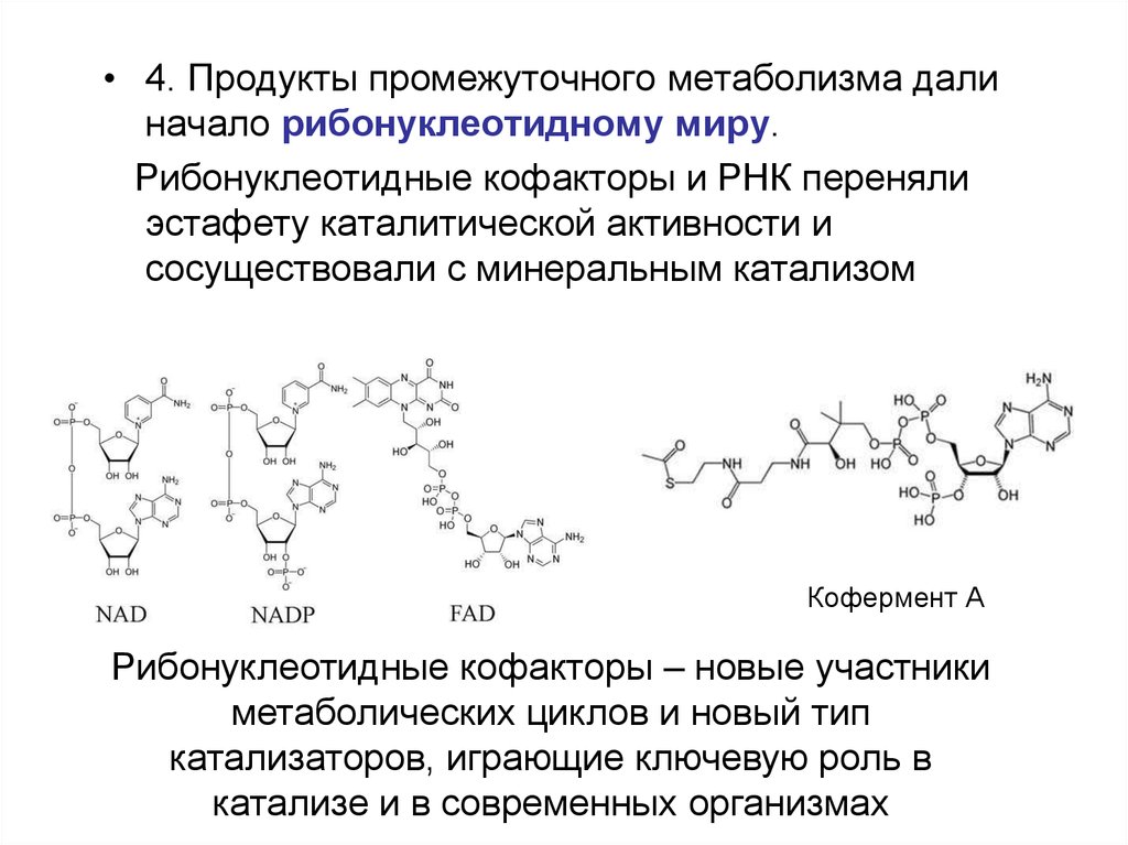 • 4. Продукты промежуточного метаболизма далиначало рибонуклеотидному миру.