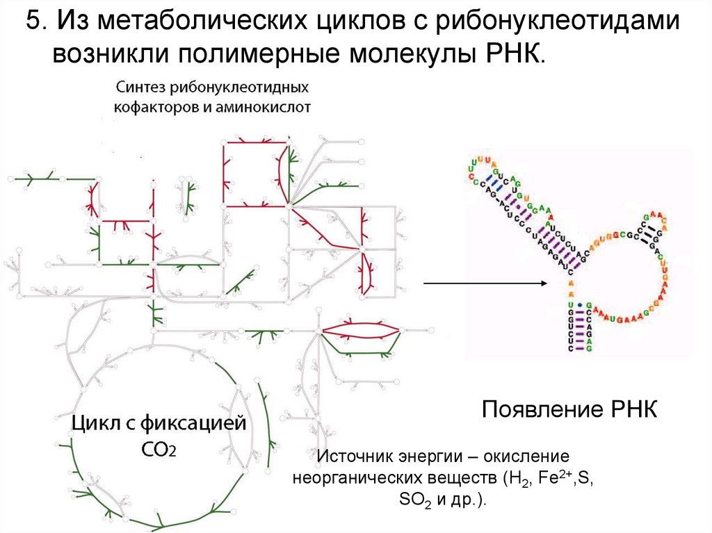 5. Из метаболических циклов с рибонуклеотидамивозникли полимерные молекулы РНК.
