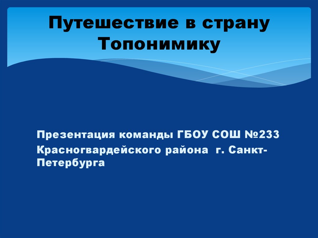 Презентация команды ГБОУ СОШ №233Красногвардейского района г. СанктПетербурга