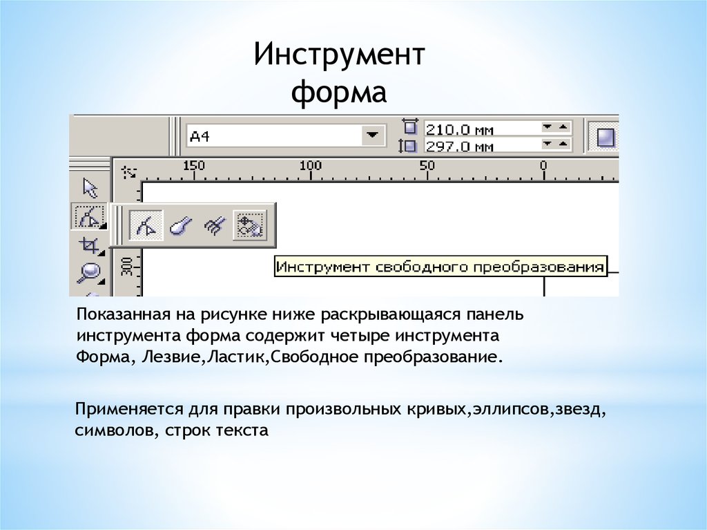 Форма, Лезвие,Ластик,Свободное преобразование.