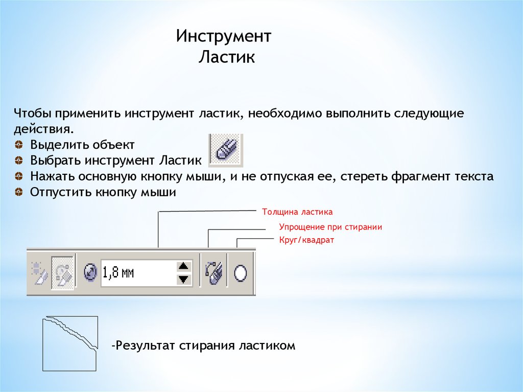 Чтобы применить инструмент ластик, необходимо выполнить следующие
