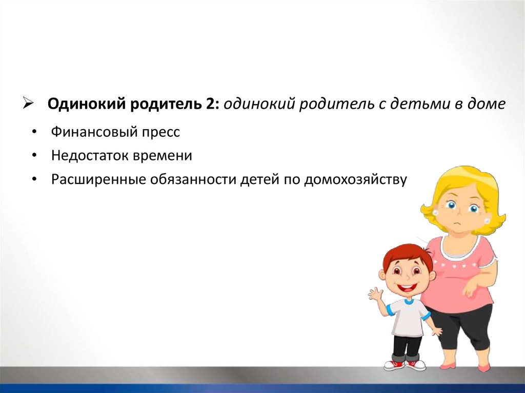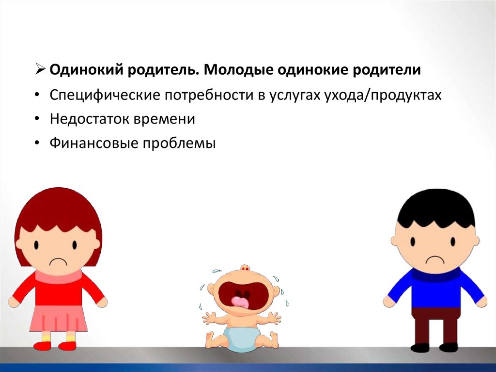 Одинокий родитель. Молодые одинокие родители• Специфические потребности в услугах ухода/продуктах