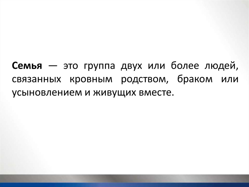 Семья — это группа двух или более людей,связанных кровным родством, браком или