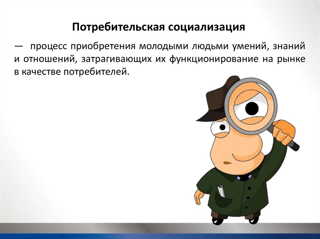 Потребительская социализация— процесс приобретения молодыми людьми умений, знаний