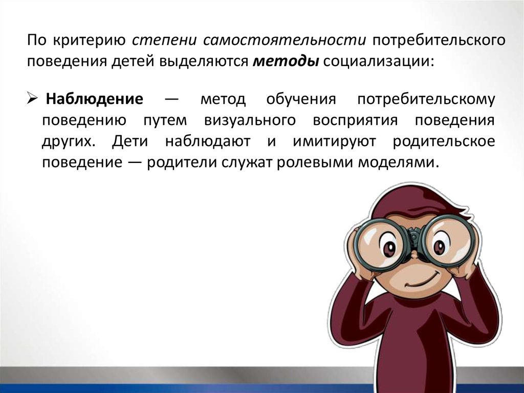 По критерию степени самостоятельности потребительскогоповедения детей выделяются методы социализации: