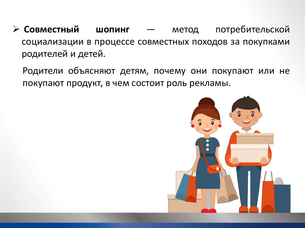 Методы потребительской социализации в семье:Инструментальный тренинг — это непосредственное