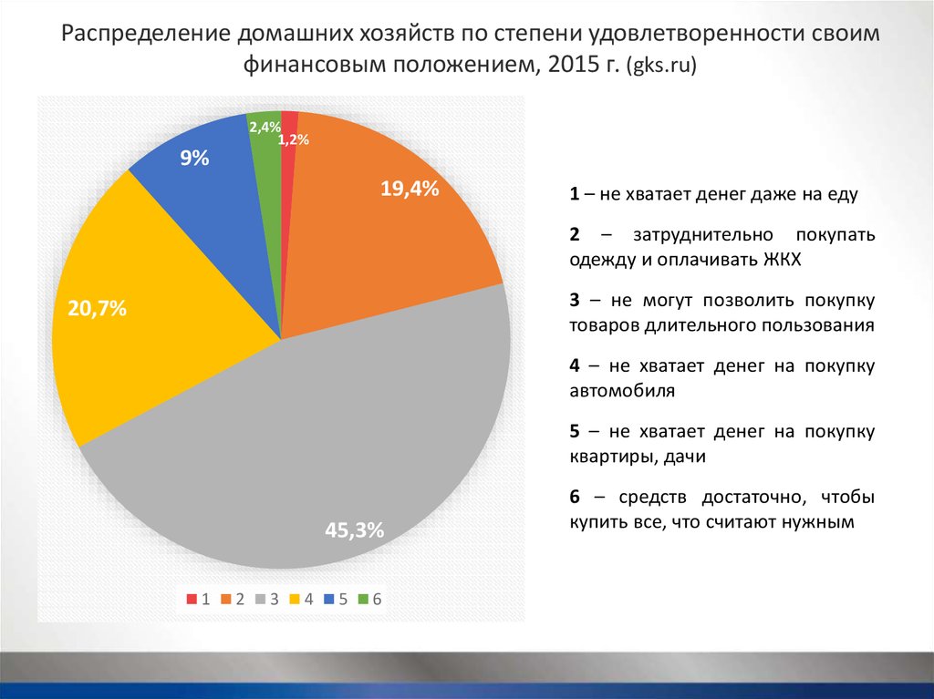 Распределение домашних хозяйств по степени удовлетворенности своимфинансовым положением, 2015 г. (gks.ru)