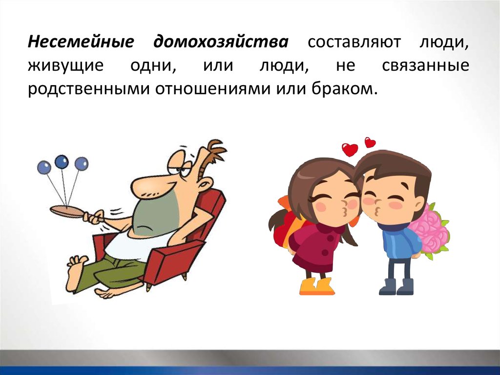 Несемейные домохозяйства составляют люди,живущие одни, или люди, не связанные
