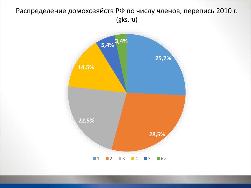 Распределение домохозяйств РФ по числу членов, перепись 2010 г.(gks.ru)