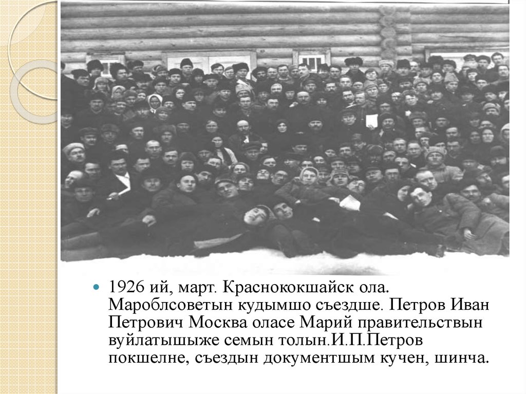 1926 ий, март. Краснококшайск ола.Мароблсоветын кудымшо съездше. Петров Иван