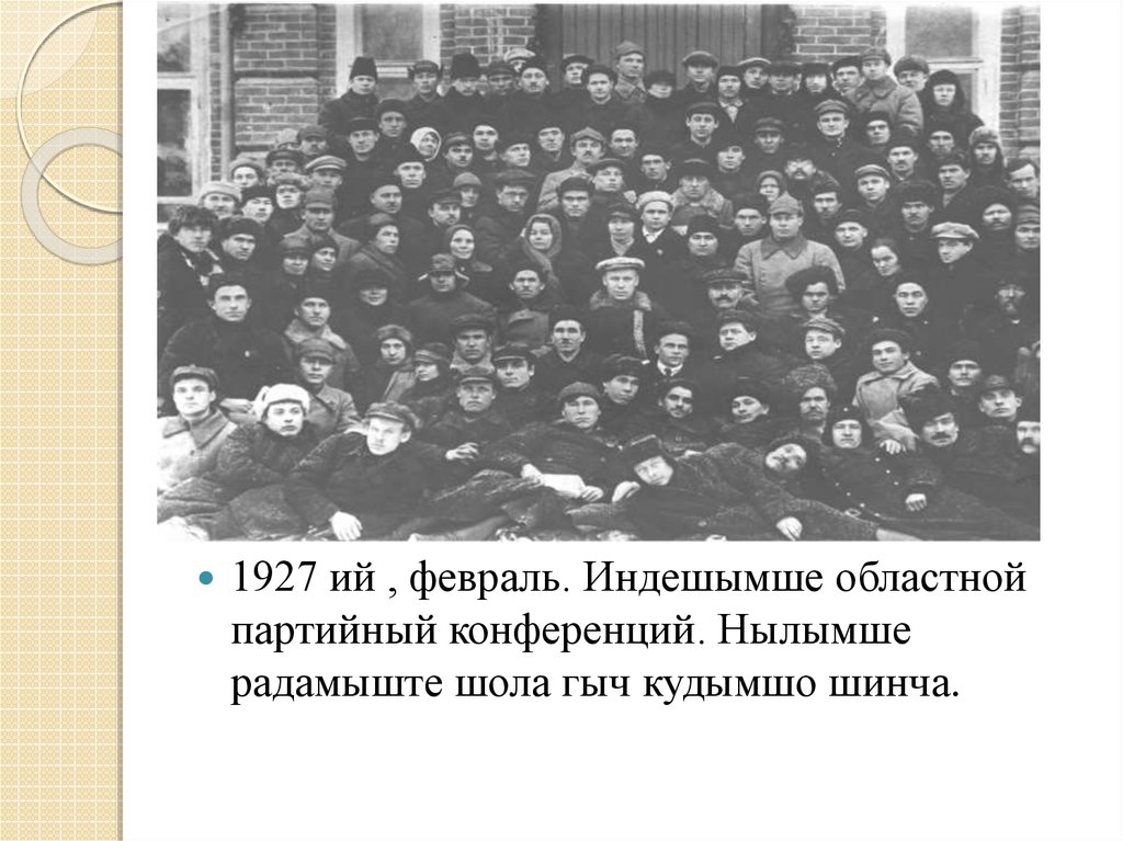 1927 ий , февраль. Индешымше областнойпартийный конференций. Нылымше