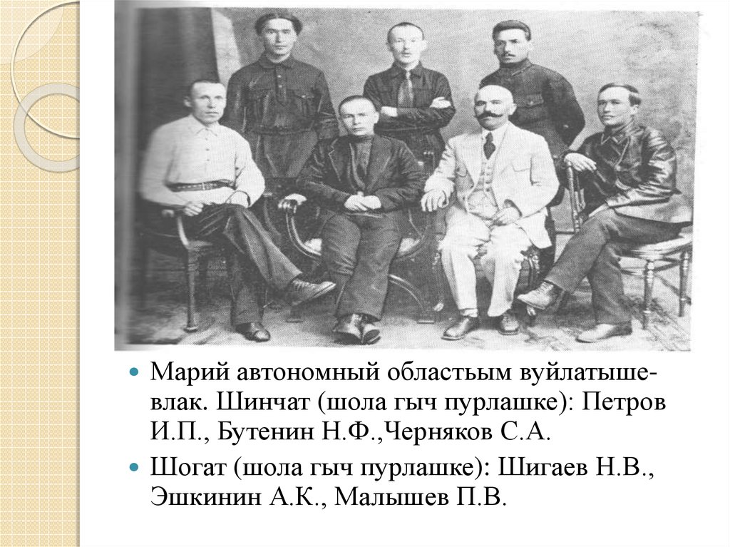 Марий автономный областьым вуйлатышевлак. Шинчат (шола гыч пурлашке): ПетровИ.П., Бутенин Н.Ф.,Черняков С.А.