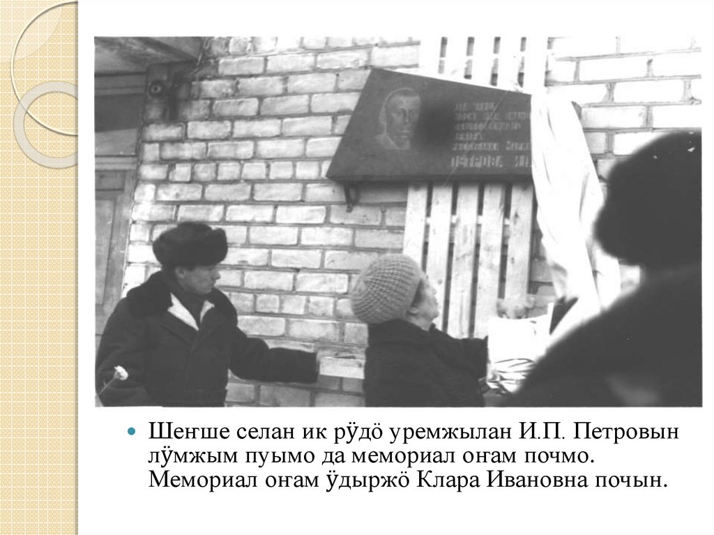 Шеҥше селан ик рӱдӧ уремжылан И.П. Петровынлӱмжым пуымо да мемориал оҥам почмо.