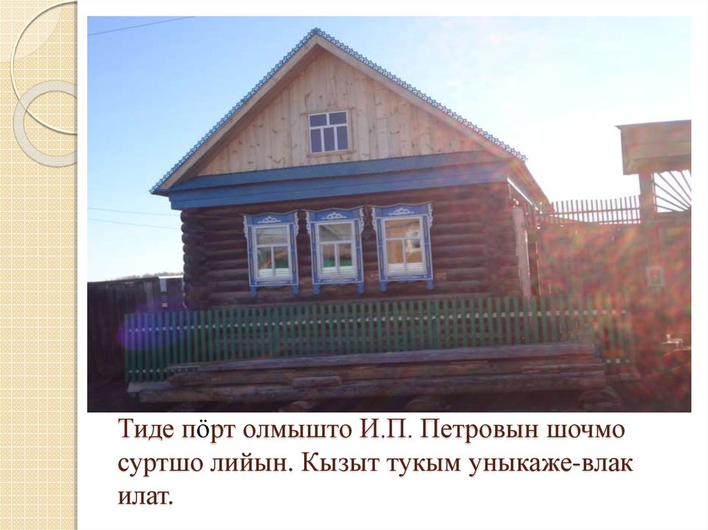 Тиде пӧрт олмышто И.П. Петровын шочмосуртшо лийын. Кызыт тукым уныкаже-влак