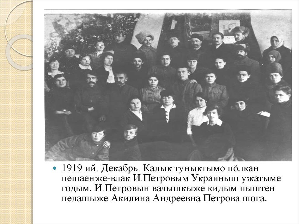 1919 ий. Декабрь. Калык туныктымо пӧлканпешаеҥже-влак И.Петровым Украиныш ужатыме