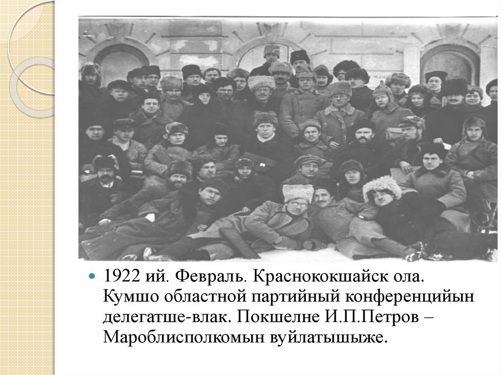 1922 ий. Февраль. Краснококшайск ола.Кумшо областной партийный конференцийын