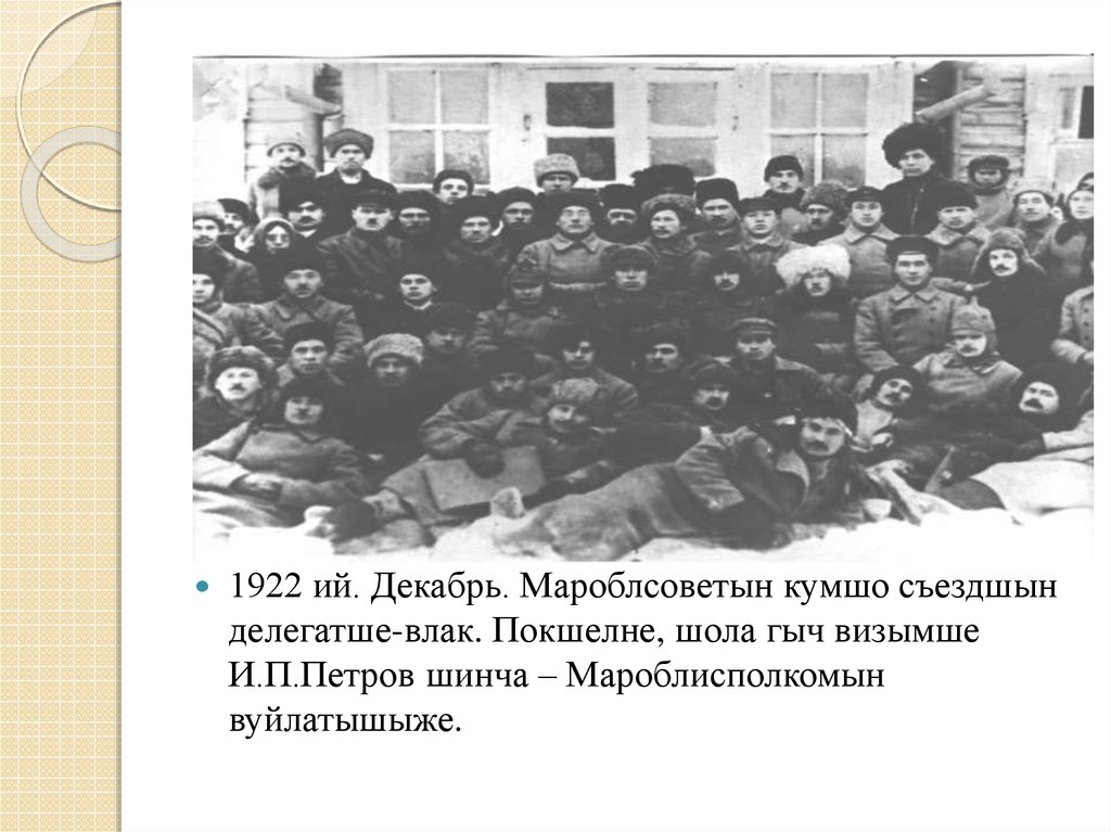 14. 1929 ийыште Угарман (Нижегородский) край ышталтын, тушко Марий Автономийат пурен. Иван Петрович Петровым Угарман крайисполком