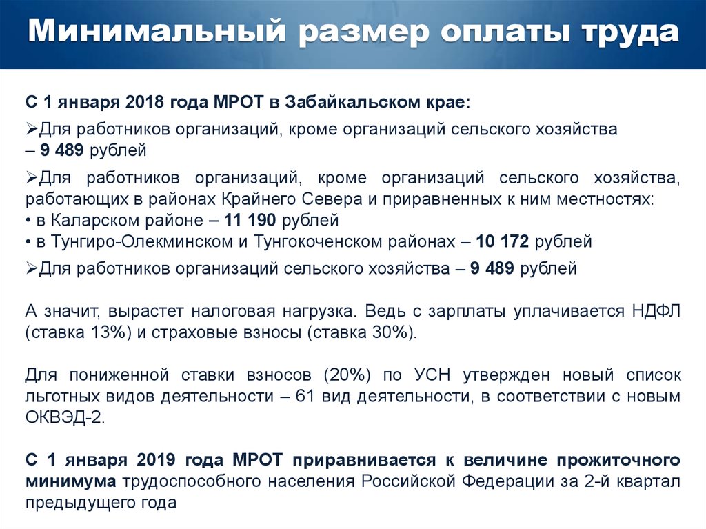 Минимальный размер оплаты трудаС 1 января 2018 года МРОТ в Забайкальском крае: