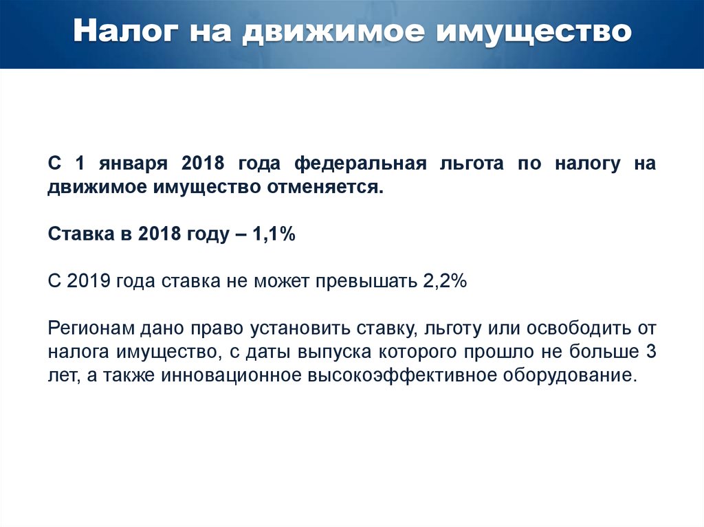 Налог на движимое имуществоС 1 января 2018 года федеральная льгота по налогу на