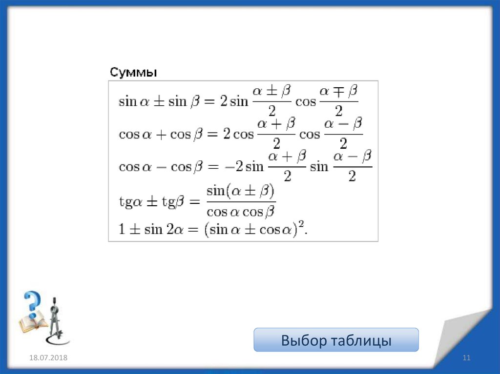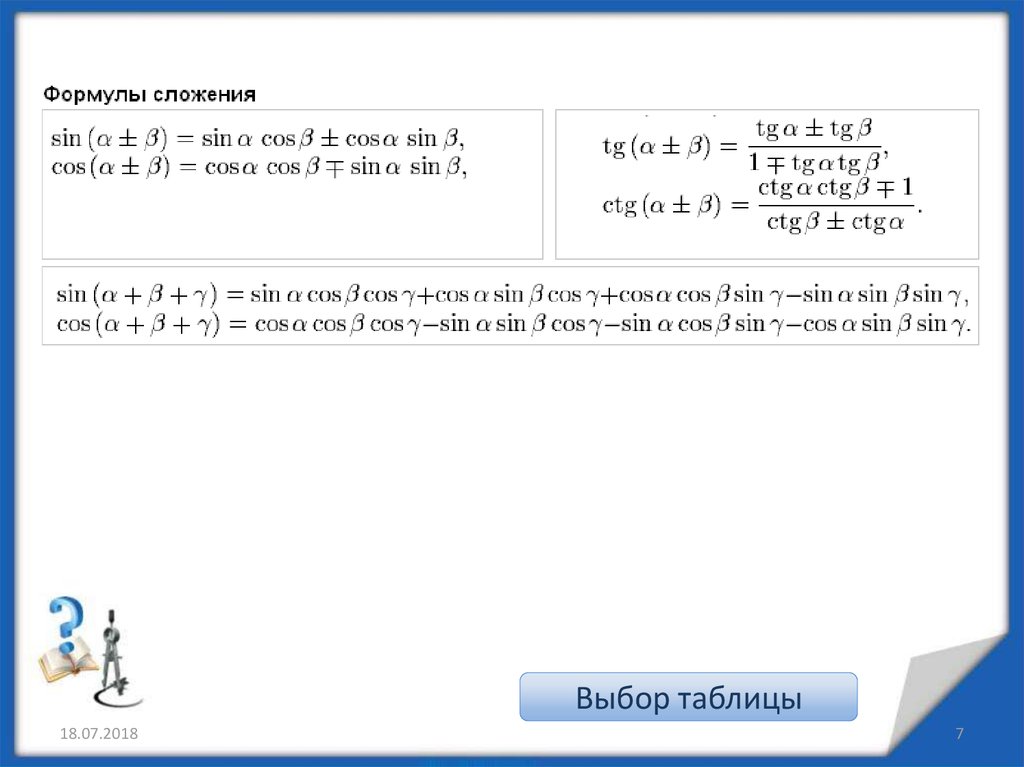 18.07.2018Выбор таблицы