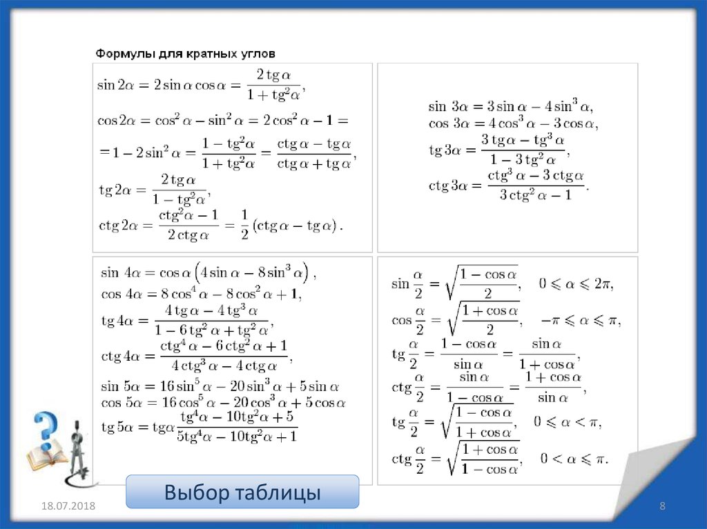 6. Формулы для кратных углов.