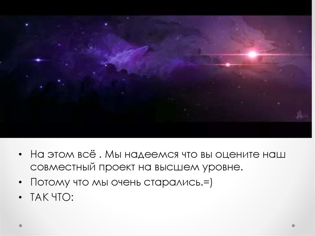 • На этом всё . Мы надеемся что вы оцените нашсовместный проект на высшем уровне.