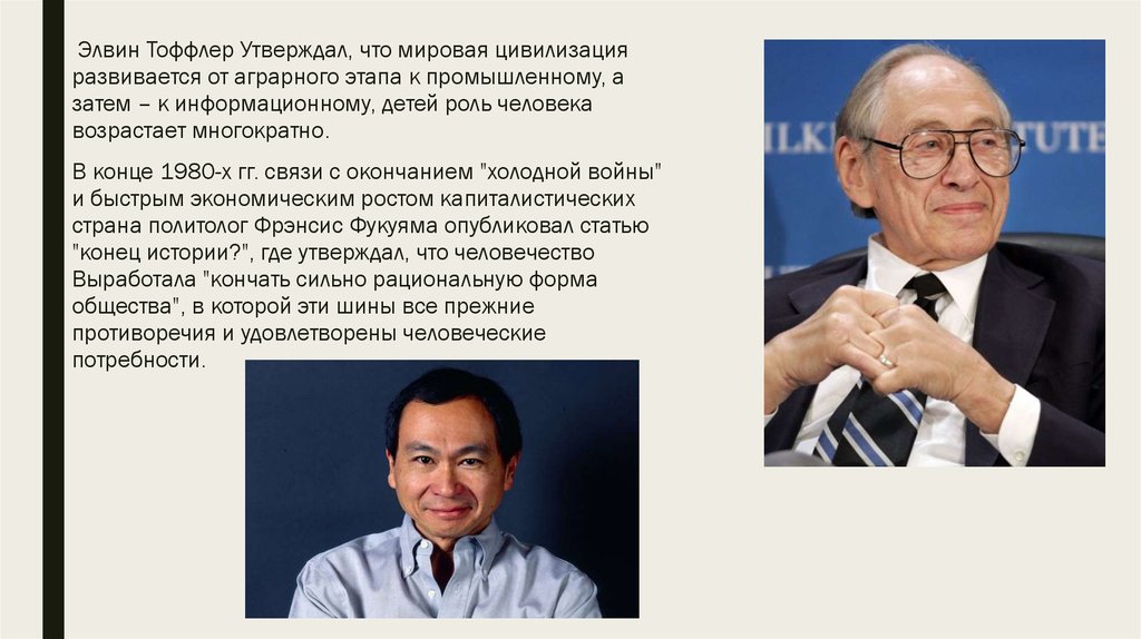 "конец истории?", где утверждал, что человечество