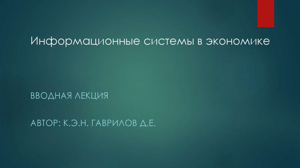 ВВОДНАЯ ЛЕКЦИЯАВТОР: К.Э.Н. ГАВРИЛОВ Д.Е.