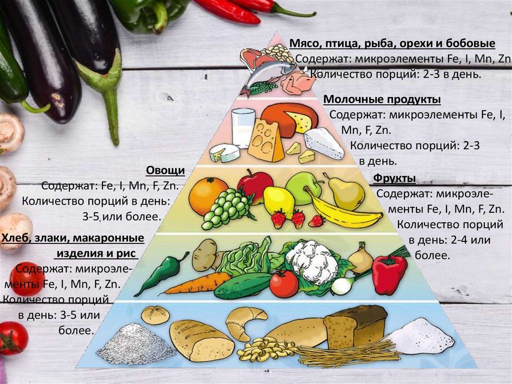 Мясо, птица, рыба, орехи и бобовыеСодержат: микроэлементы Fe, I, Mn, Zn.