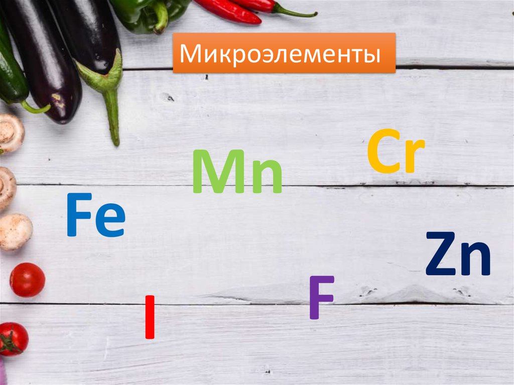 Содержат: микроэлементы Fe, I, Mn, F, Zn.
